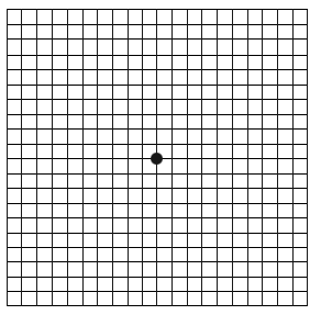 Make sure your room lights are on. Put on your reading glasses if you wear them, and test each eye separately (cover one eye at a time). Concentrate on the center spot . If the lines appear wavy, or if their are spots or holes in the grid, then you may have a macular problem |