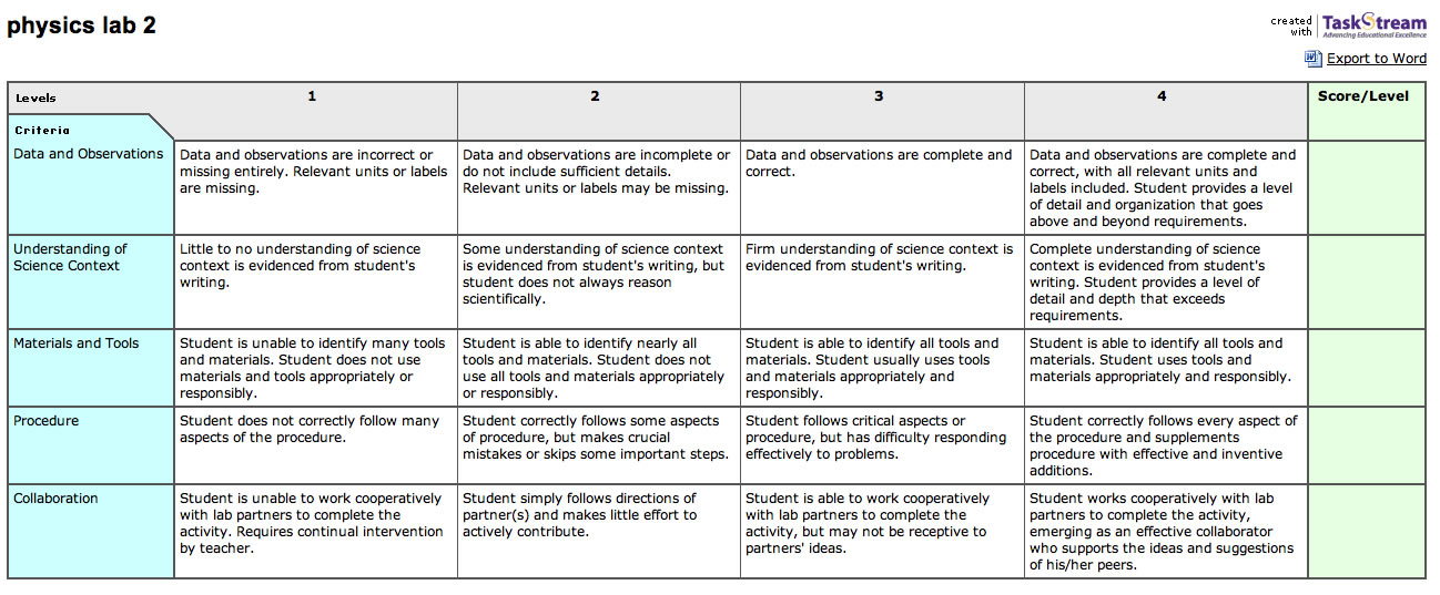 2. Measuring Student Proficency: How do the evaluative criteria (see sample rubric) measure student proficiency for these standards/objectives? Evaluative criteria are performance indicators that you use to assess student learning. Categories of evaluative criteria include understanding of a particular science concept, the relationship between two concepts, or the fit between evidence and conclusions. (TPE 3)