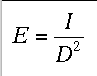 Illuminance: ( E=illuminance; I= intensity of source; D=distance)