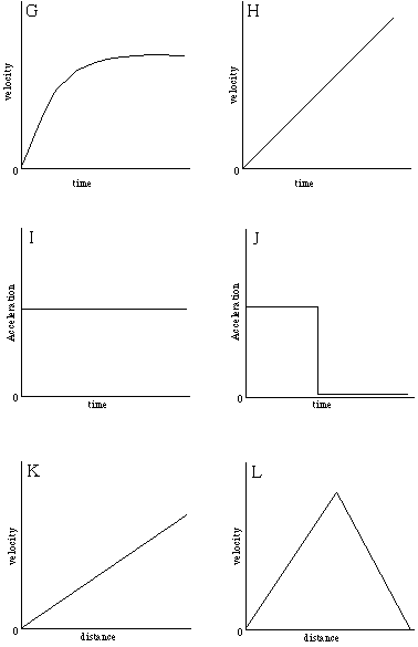 Examine each of the graphs below. Picture in your mind the motion that is being described, and then walk in such a way that the position, velocity, or acceleration of your body is reflected in the graph. Use the ultrasonic motion detector to analyze your movement and perform a screen capture of each activity. For more information, see related Pasco lab (17-position-match graph)
