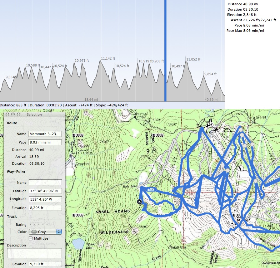- Sample plotted data: Mammoth Mt. ski trip: day 1; day 2.